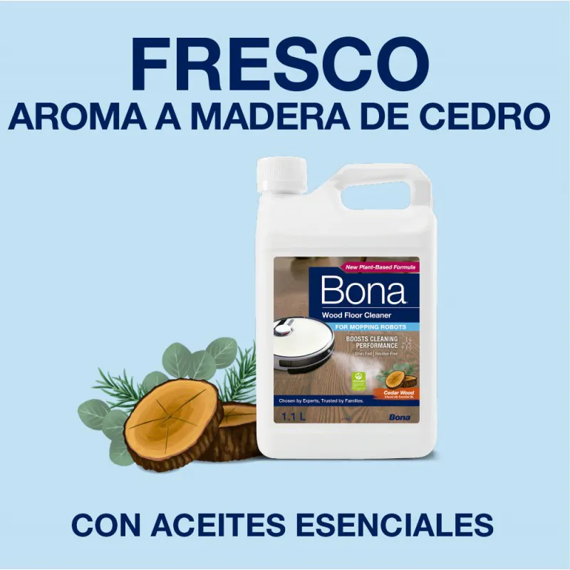 Su fórmula única concentrada con ingredientes vegetales está enriquecida con aceites esenciales de madera de cedro para un aroma fresco. Ha sido desarrollado para lograr una limpieza sencilla y eficaz de suelos de madera barnizados, encerados o aceitados, para dejar unos suelos limpios y cuidados. Su fórmula sin necesidad de enjuague y libre de residuos limpia de forma eficaz los suelos de madera, eliminando polvo, suciedad y grasa acumulada. Presuma de suelos con Bona.