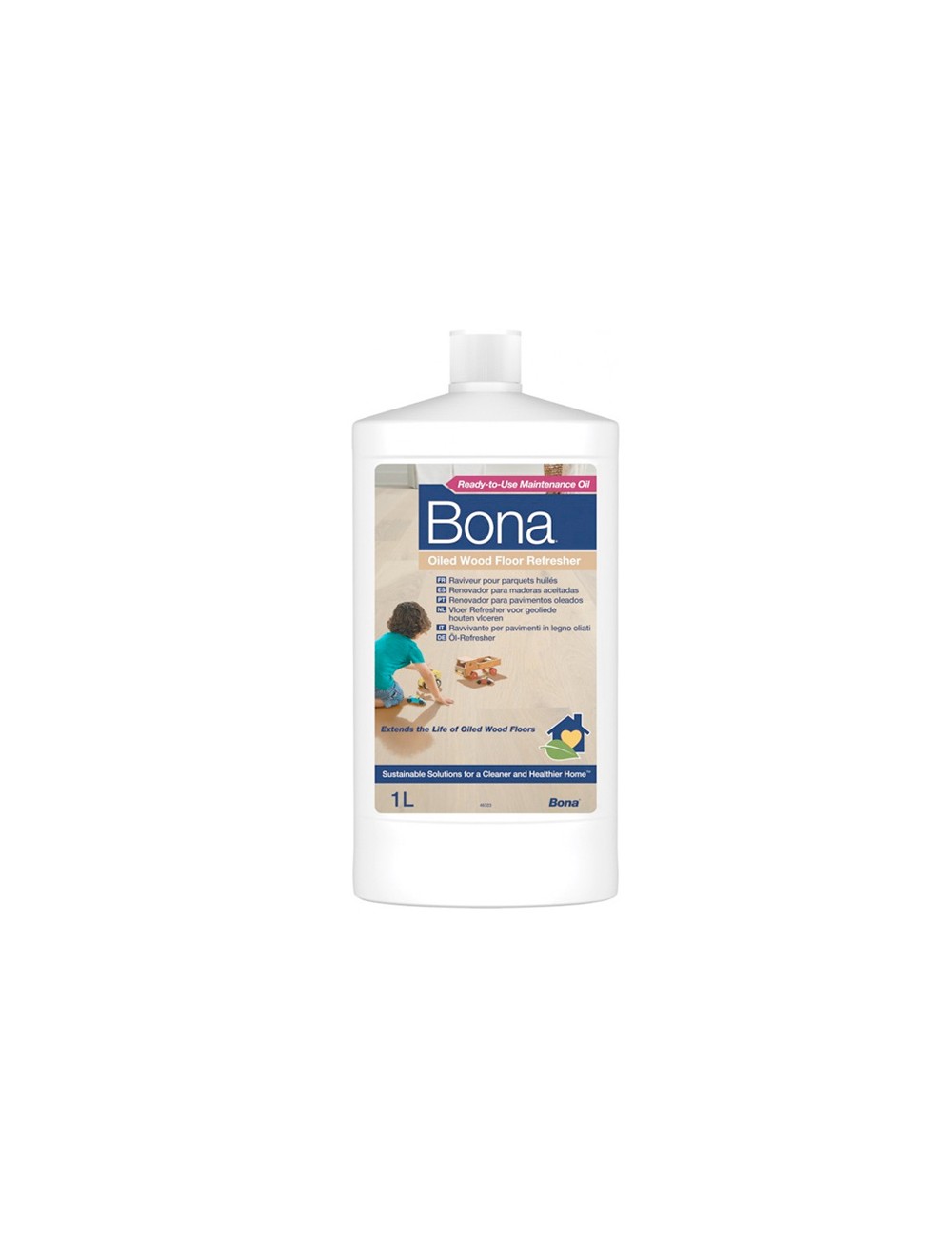 Fácil de usar, de secagem rápida e saudável, o Renovador para Madeiras Oleadas Bona restaura o brilho dos pavimentos de madeira oleada em pouco tempo.