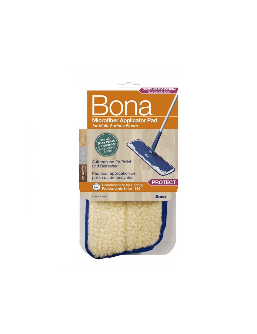 Pad Mopa Restaurador Bona é concebida para a aplicação do Renovador da Bona e todos os Restauradores em todas as superfícies, lavável e reutilizável, aplicável nas Mopas da Bona com fitas de velcro.
